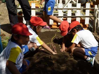 1学期から大切に育ててきたおいもを、いよいよ収穫。
