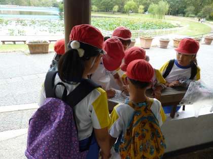 恐竜の骨をみて、「うわあ〜。」「すご〜い。」の