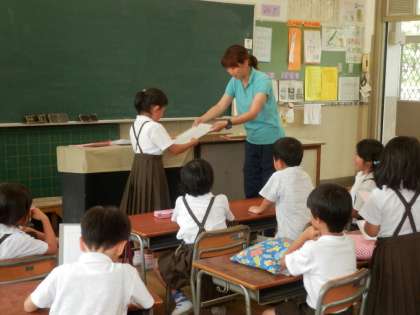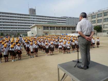 1学期も終業式を迎えました。今回の終業式は、天井工事のため体育館が使用できなかったので、運動場での終業式となりました。終業式の後、子どもたちは教室に戻って、担任から通知票を手渡されました。1年生にとっては初めての通知票でした。子どもたちはどきどきしながら受け取っていたことと思います。