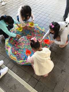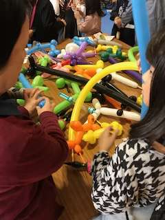 昔あそび、バルーンアート、スーパーボールすくいの様子です。