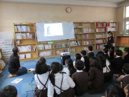 20分休みになって「図書室で絵本の読み聞かせをやっています」