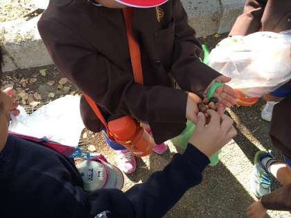ドングリを拾ったり、秋の草花を観察したり、