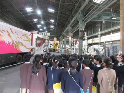 最初、多目的室で、いろいろな作品の写真を見ながら、