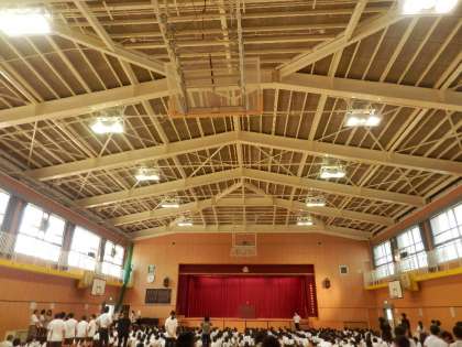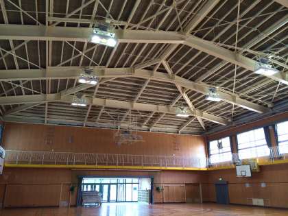 天井等の落下防止対策として、体育館の天井パネル撤去等の工事が完了しました。工事期間中は、近隣の方々、体育館を利用される方々にはたいへんご迷惑をおかけしました。ご協力ありがとうございました。