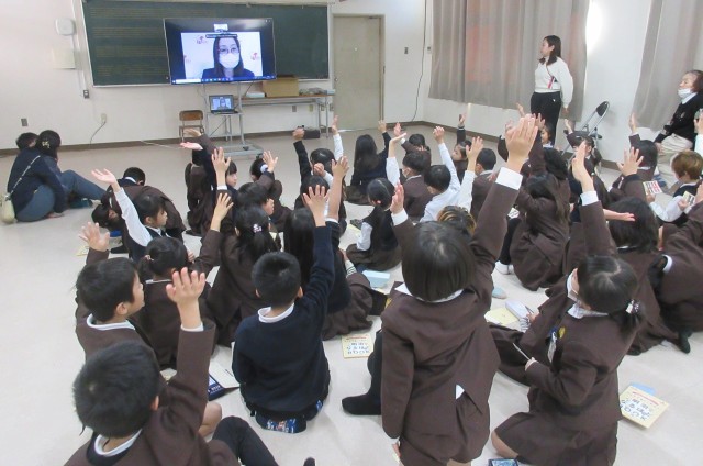 12月17日に行われた1年生オンライン工場見学の様子です。リモートで工場の方から説明やクイズを出してもらったり、動画を見てお菓子作りの工程を学んだりしました。普段食べているお菓子がどのようにして作られているのか、子どもたちは興味津々で楽しみながら学習することができました。