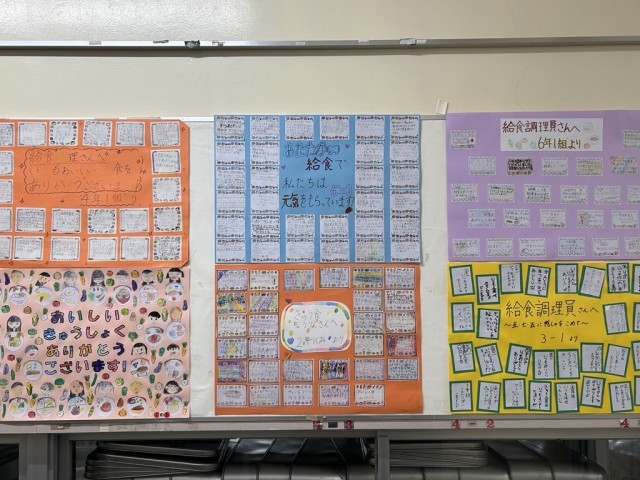 加賀屋東小学校では、健康給食委員会の児童が給食クイズを放送したり、給食調理員さんへ感謝のお手紙をプレゼントしたりしました。