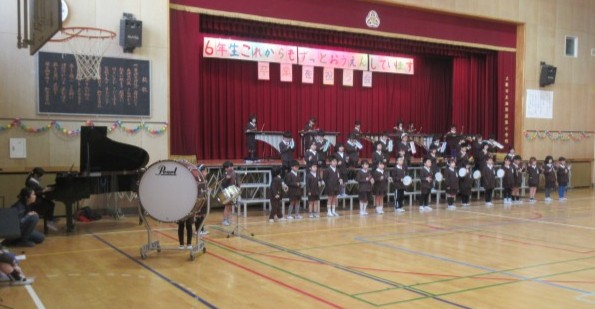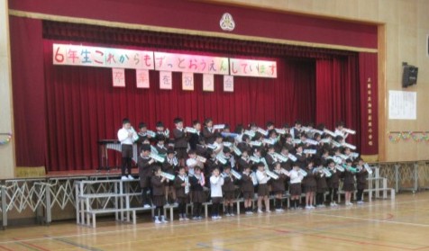 3月5日木曜日の2時間目に「6年生を送る会」がありました。1~5年生がもうすぐ卒業する6年生に向けて感謝の言葉や歌・合奏などをプレゼントしました。また、6年生からもリコーダー演奏と合奏のお返しがありました。どの学年も気持ちのこもった演奏や合唱をしていました。
