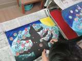 図画工作科の時間に、国語科で学習した「モチモチの木」をテーマにした作品作りを行...