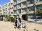 出発式。 晴天、修学旅行日和。 6年生は、全員が出席して予定通り出発する...