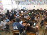 新しく導入された一人一台のタブレット端末を使って、「スマートスクール」というアプ...
