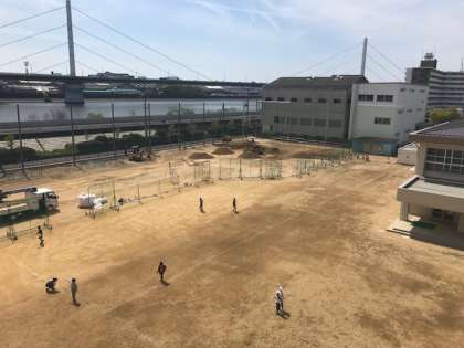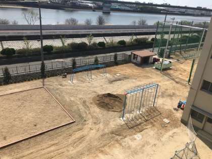 工事の関係で、長い間運動場を囲っていたフェンスがなくなりました。