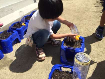 5月24日(金)に生活科の学習で、あさがおの種をまきました。