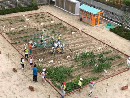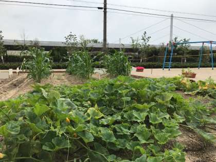 各学年が育てている植物も大きく成長してきました。今日は理科の学習で子どもたちが観察する様子が見られました。