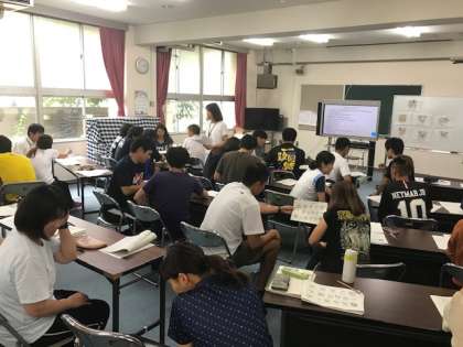 先生たちも声を上げて、楽しみながら研修を行いました。今日の研修をこれからの活動に活かし、子どもたちと一緒に楽しい外国語活動にしていきたいと思います。