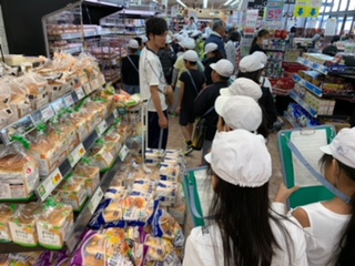 10月16日(水)には、スーパーマーケットの工夫を調べるため、「ライフ新北島店」に社会見学へ行きました。売り場や普段なかなか見られないバックヤードの様子を見学させて頂きました。さらに、大きな冷凍庫や冷蔵庫にも入らせていただきました。なんと冷凍庫は−22度!みんな「寒いー!」「アイスとか魚が入っている!」と驚きや発見がたくさんあったようです。