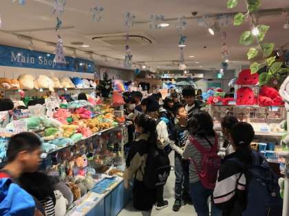 活動班に分かれて活動中です!真っ先にお土産コーナーに向かう班や先に見学する班など、それぞれメンバーで話し合って決めています!
