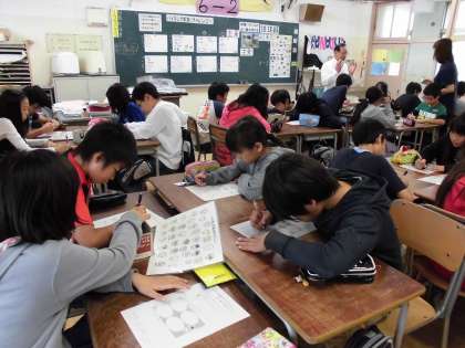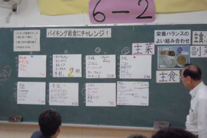 グループに分かれて「バイキング」のメニューを考えようという課題で、みんな楽しそうに話しあって考えていました。