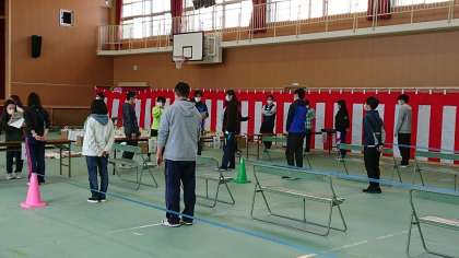 新型コロナウィルス感染症にかかる緊急事態宣言下でのお渡しになりますので、「密閉・密集・密接」を避けられるように、教職員でシミュレーションをしながら導線や渡し方を考えました。受け取りに来られる方が学校内にとどまる時間をできるだけ短くしようと考えましたので、ご協力のほどよろしくお願いいたします。