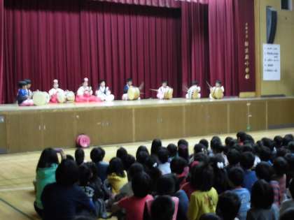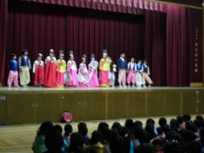 その後、6年生児童によるスピーチ、そして、音楽演奏と舞踊(ムヨン)の発表と続きました。