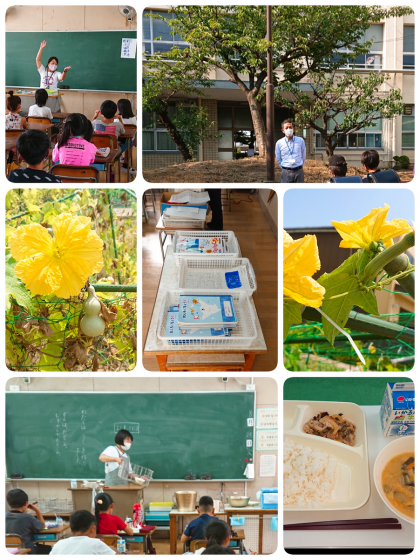 今日から給食も始まりました。献立は、豚肉の生姜焼きとみそ汁でした。暑い中での2学期スタートですが、よく食べよく学びよく運動して元気に過ごしてくれることを願っています。