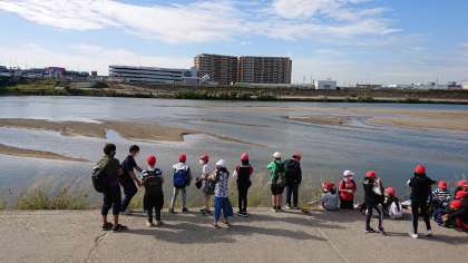 魚や鳥を見つける子、川の流れを眺める子、土手を駆け上がる子、過ごし方はそれぞれです。