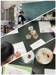 種子の発芽の様子を観察し、気づいたことを記録しています。