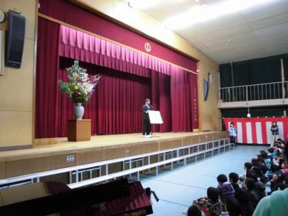 また、4年生代表の2名が今年度一年間を振り返りスピーチをしました。運動会やワールドカップなどたくさんの思い出について堂々と話しました。