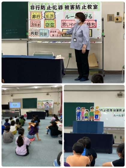 なんば少年サポートセンターの方に来ていただき、5年生が学級単位で話を聞きました。ルールを守ることの大切さやペープサートを用いた万引き防止、犯罪被害防止など、子どもたちに分かりやすいように話をしてくれました。話の内容に関心が高かったようで、みんな真剣に聞いていました。
