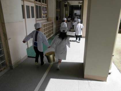 6年生のお兄さん・お姉さんに準備を手伝ってもらい配膳できました。給食も仲良くおいしく食べられました。明日からの給食も楽しみですね。