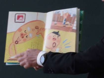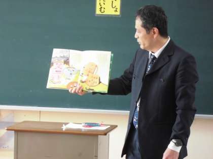 毎週水曜日の朝の読書タイムの時間、校長先生が各学級に読み聞かせをしに行きます。