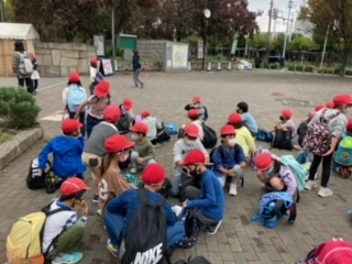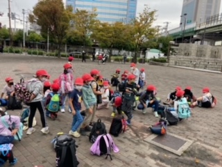 大阪城公園に到着しました。トイレ休憩後に活動を開始します。