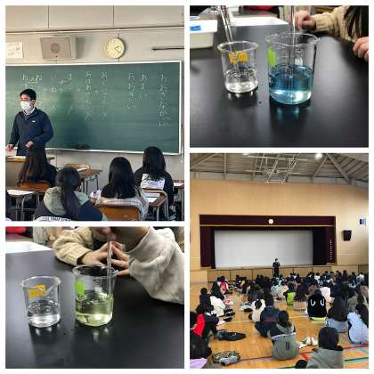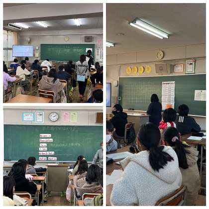 そして、授業では、国語では「おおきなかぶ」を、社会では「米の生産量」を、数学では「正の数、負の数」を、理科では「水溶液の中和」を、英語では「自己紹介」を行いました。