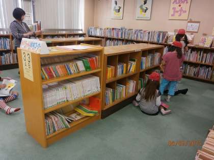 館の方にパネルシアターを見せてもらい、図書館についての説明を聞きました。