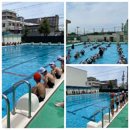 1、2年生は午前中、4、6年生は午後からプールで授業です。