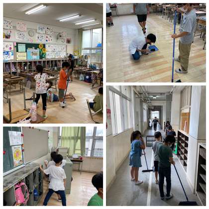 1学期にお世話になった校舎を大掃除できれいにする姿も見られました。