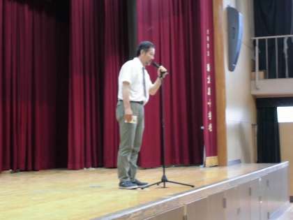 台風のため前日に実施しましたが、できなかった6年生代表の児童のスピーチを中心に行いました。