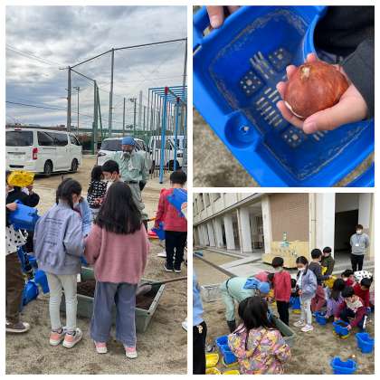 入学式の頃にチューリップの花で新1年生を迎えられるように、今から世話をしていきます。