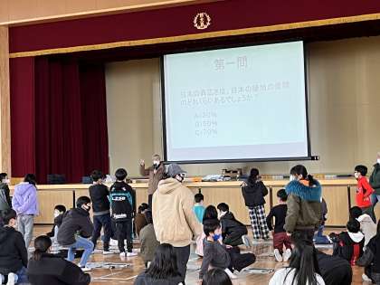 日本の森についてのクイズが3問あり、みんなでパーフェクトを目指しました。