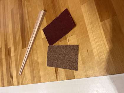 最後に、一人ひとりのオリジナルおはしを紙やすりで作りました。