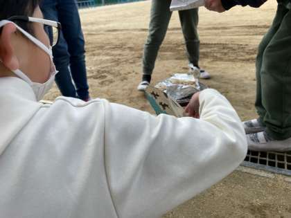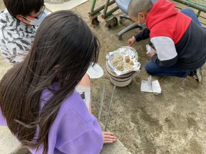 図画工作科で作成した粘土を温めたのですがどのぐらい焼けているのか判断が難しく「昔の人は大変だったんだね」とつぶやきながら頑張っていました。