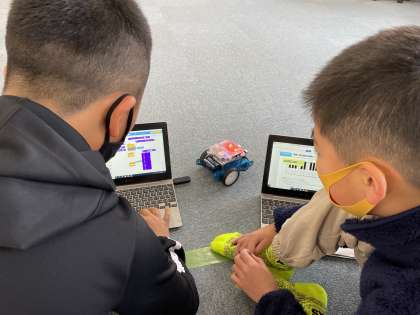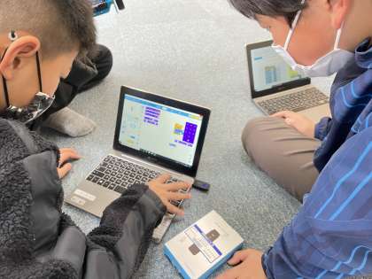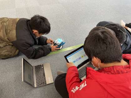 5年生がm-Botを使い、プログラミングを行っています。