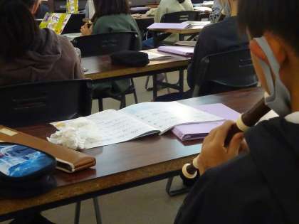 今日から普段の授業が始まりました。5年生の音楽では「ビリーブ」を合唱し、リコーダーの練習もしました。みんな楽しそうに歌ったり、演奏したりしていました。