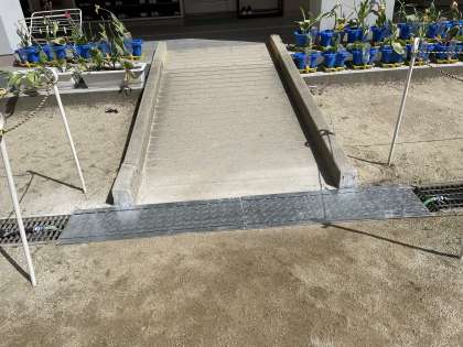 管理作業員さんが、中庭のスロープの溝ぶたを交換しました。
