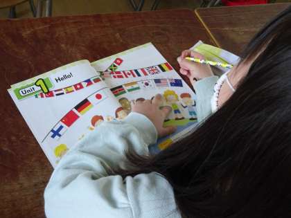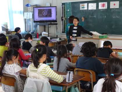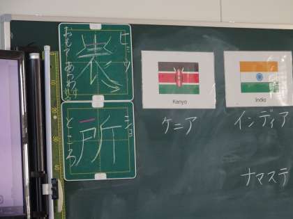 4時間目の3年生。C-NETのLileth Azarcon先生と一緒に世界のあいさつを学習をしました。アメリカ、中国、韓国といった身近な国から、ケニアやフィンランドなどの遠い国まで。楽しく、元気よく発音することができていました。