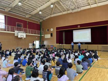 警察の方に来ていただき、低学年と高学年に分かれてお話をしていただきました。