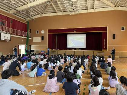 低学年は、道路を渡る時に気を付けることについてお話をしていただきました。