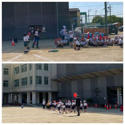 ソフトボール投げや50m走、反復横跳びを行いました。