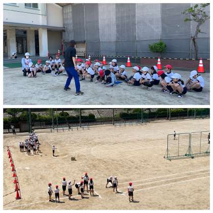体育の時間を使い、シャトルランや上体お越しなどにも取り組みます。