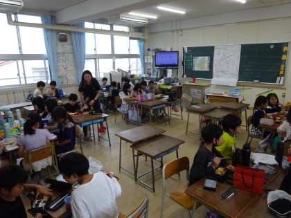 雨のため、3年生の遠足は6月2日(金)に延期となりました。さぞかしがっかりしているだろうと、お弁当の時間にのぞきに行くと「ウインナー見て!」「おいしそうやろ!」と、ハイテンションな子どもたち! とってもうれしそうにお弁当を食べていました。お手間おかけしますが6月2日(金)もよろしくお願いします。