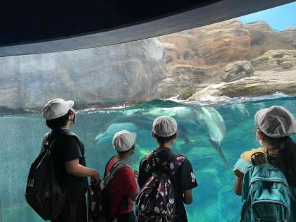 子どもたちは、イルカやジンベエザメなどを見ました。